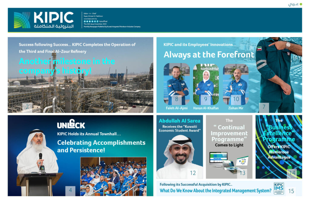 The Corporate Brochure provides capsule information about KIPIC’s core business, mission, vision, and values. It also includes a short overview of the Al Zour Complex and its strategic projects.